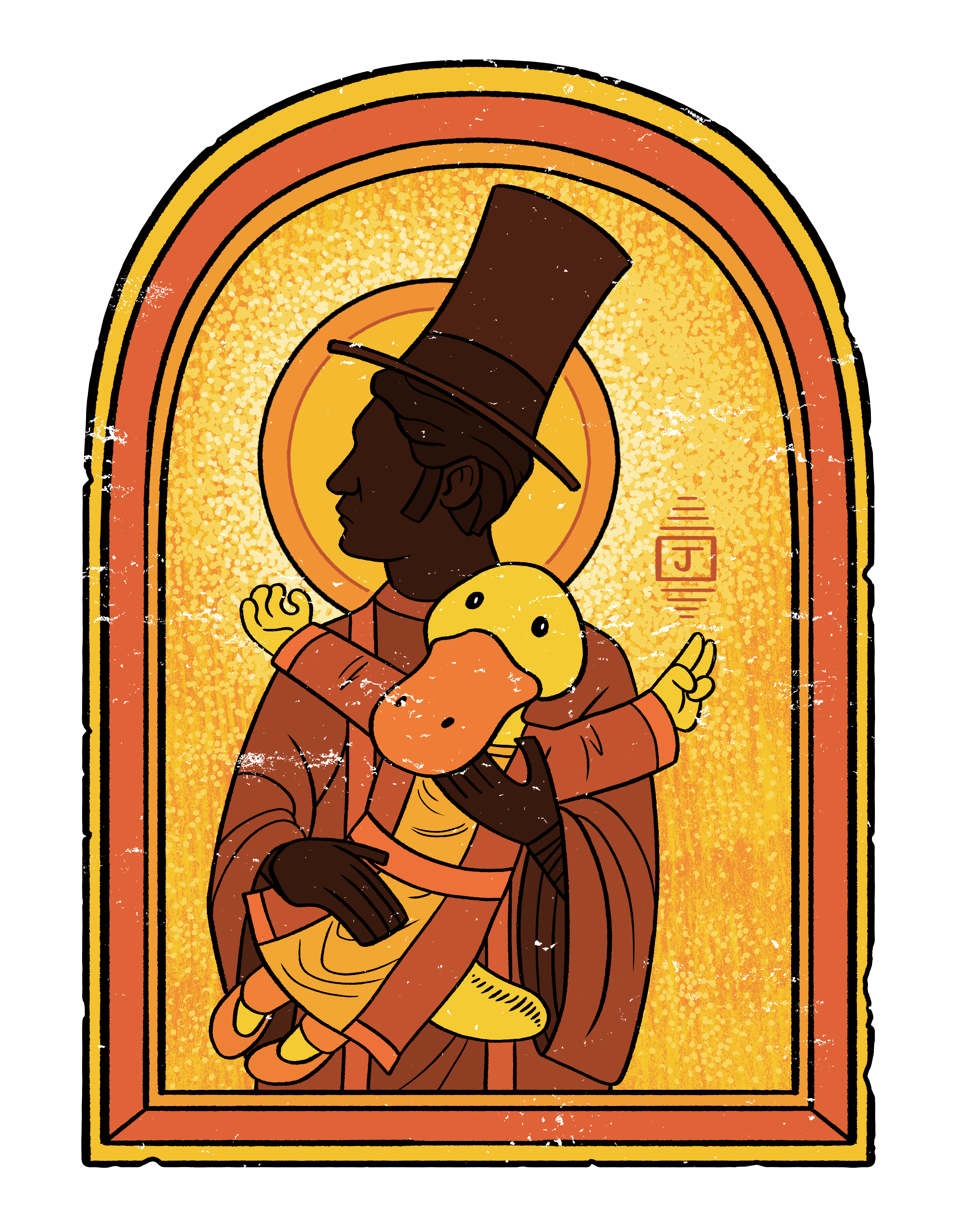 The only living true believer in the ancient religion of Phantom Deeps, The Church Of The Cosmic Platypus. We thought Pius perished in the blimp crash. However, they claim they survived because of their devotion, but we suspect it was a huge amount of Diamant fungus that saved them. Found in the Old Town church. -