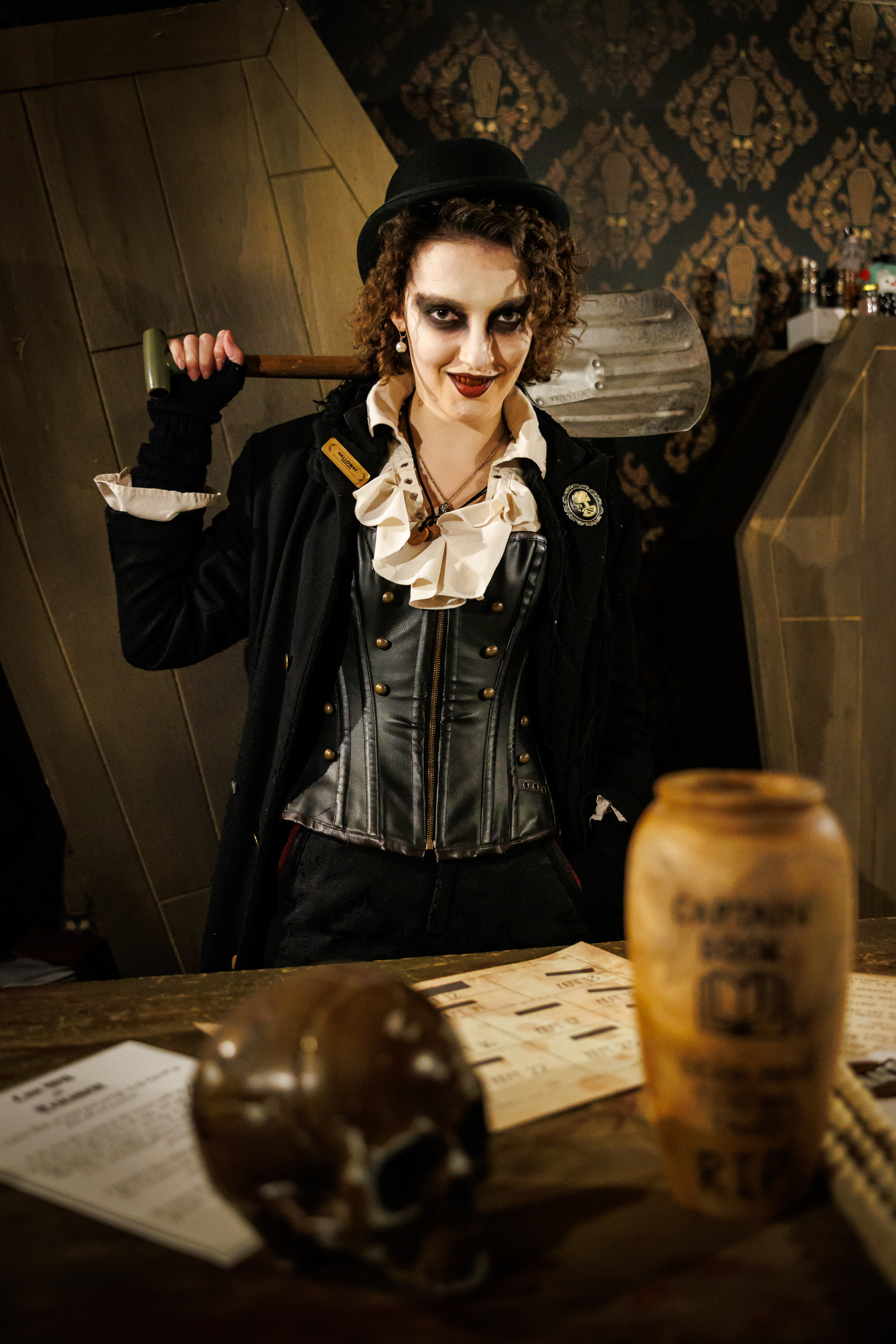 Wonderfully morbid and preferring ghosts and corpses to the living. There will always be bodies to bury, so who cares what happens around them? Although Halloway can sometimes be pushed to champion against injustice. Found in the Old Town Undertakers. -